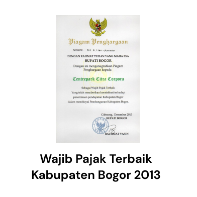 All digital content, materials, and/or intellectual property displayed on this website, including but not limited to text, graphics, logos, images, audio and video clips ("Digital Property"), are the exclusive property of PT Centrepark Citra Corpora ("Centrepark") and are protected by applicable laws.